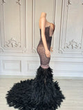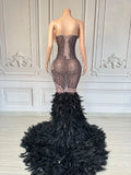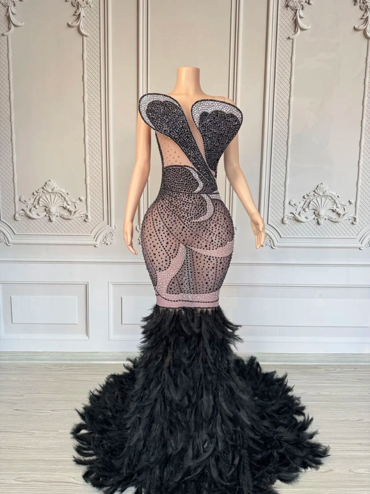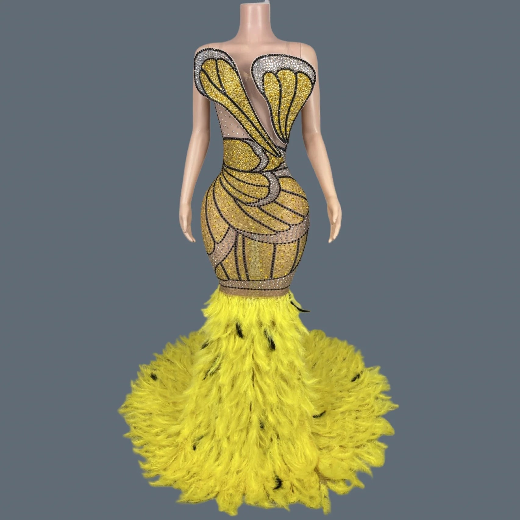 Luxury Women Feather Evening Dress Sparkly Sexy Prom Couture Rhinestone Birthday Party Ball Celebrate Photo Shoot Wear Mifeng