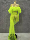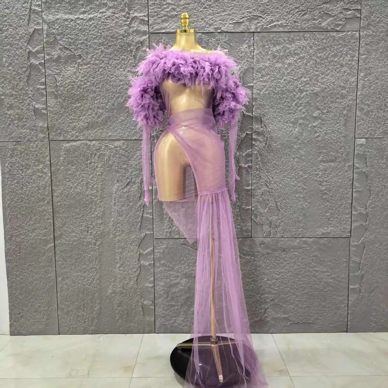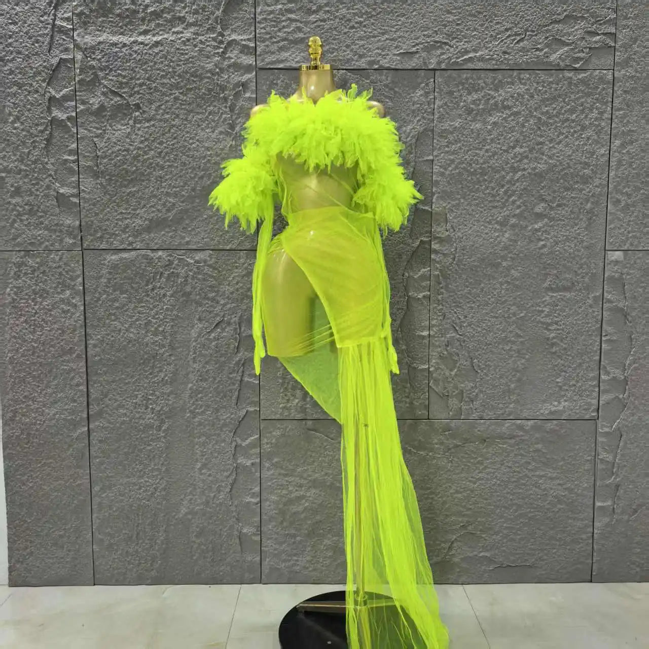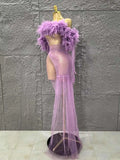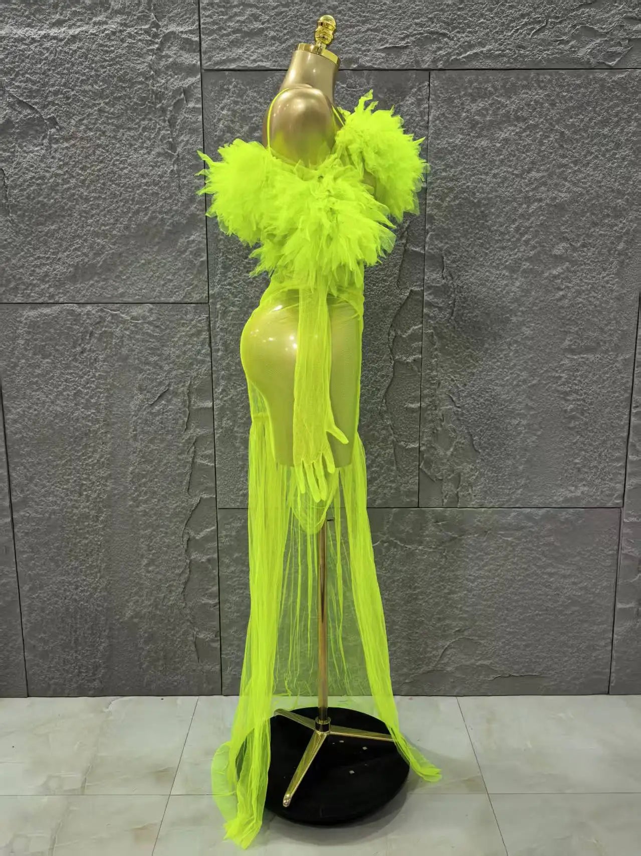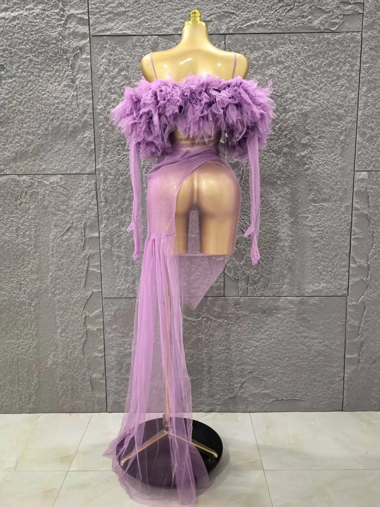 Mesh Ruffles Sexy See Through Bodycon Mini Dress Gloves Celebrate Nightclub Party Birthday Fashion Photo Shoot Wear