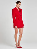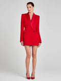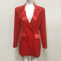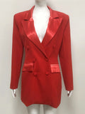 Modphy Women Fashion Double Breasted Red Blazer Coat Notched Neck Long Sleeves Female Outerwear Chic Lady Outfits