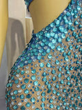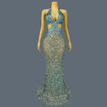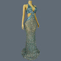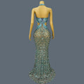 New Mermaid Blue Maxi Dress Shell Sequins Rhinestone Evening Gown for Women Luxury Ball Dress Deep V Neck Mesh Dress Beiduofen