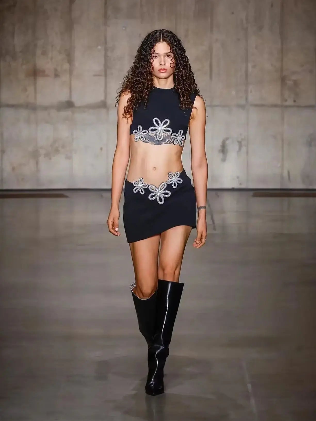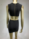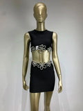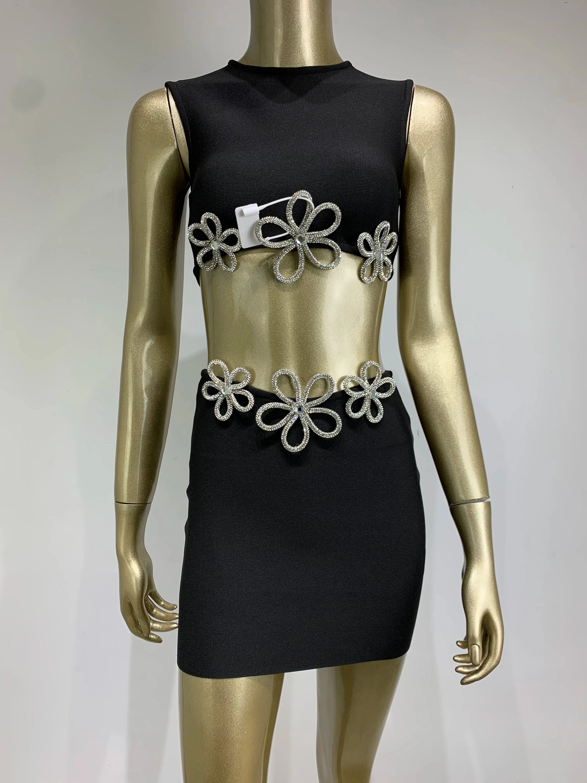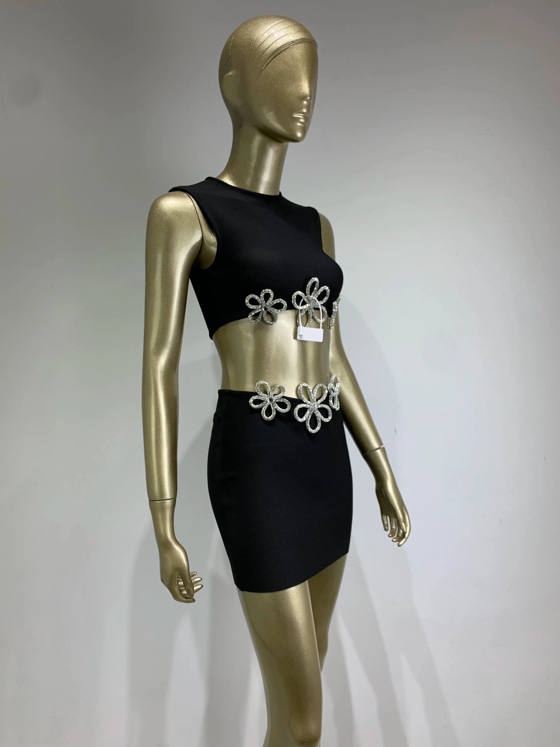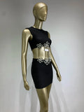 New Women Summer Celebrity Sexy Crytal Black Mini Bandage Skirt Suit Knitted Elegant Evening Club Party Two Pieces Set