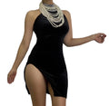 Pearl Necklace Velvet High Slit Mini Dress Luxury Dinners Event Sleeveless Evening Dress Nightclub Prom Sexy Short Dress Guilin