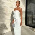Pink Red Women Sexy Strapless Florlas Bodycon Bandage Long Dress Celebrate Nightclub Party Birthday Fashion Dress Outfit