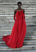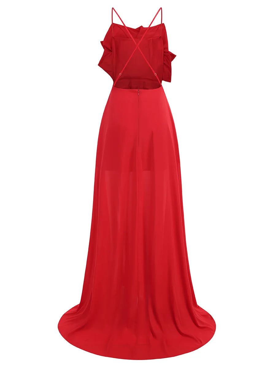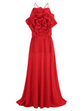 Red Color Women Sexy Strap Sleeveless Florals Loose Floor-Length Dress Celebrate Evening Party Wedding Mermaid Dress