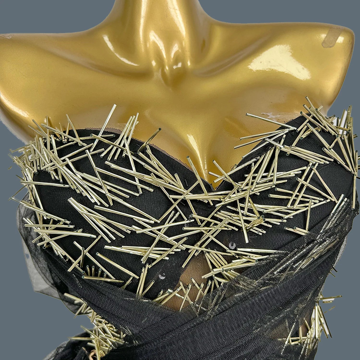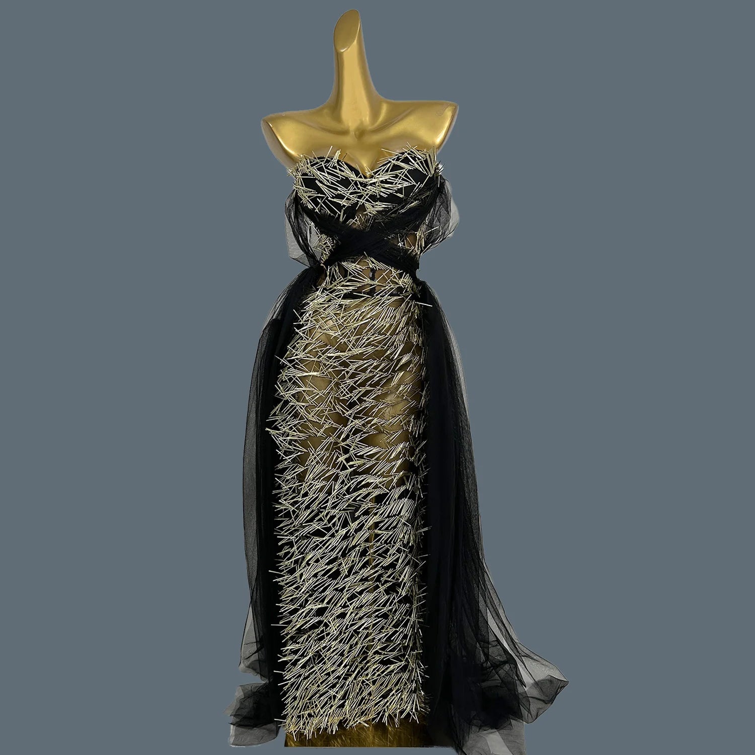 Sexy High-end See Through Mesh Evening Dress Suit Gold Sequins Black Dress Chiffon Long Dress Bar Special Design Outfit Ciwei