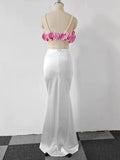 Sexy Pearl Flower Pearl Flower + Long Skirt Set Women Backless Wedding Holiday Party Lady Elegant Outfits 2025 Summer New