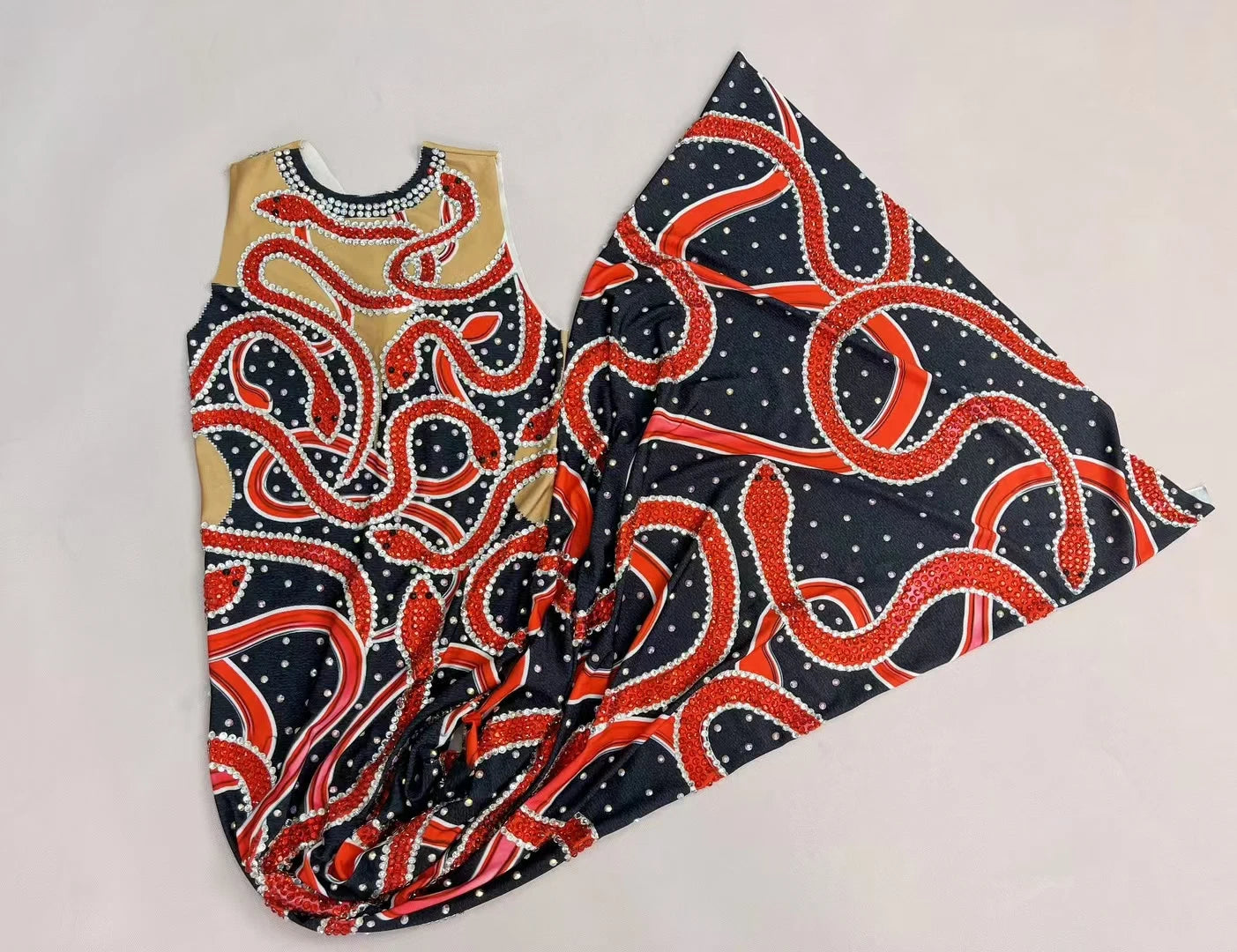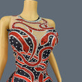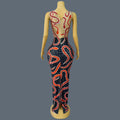 Sexy Red Snake Pattern Sparkly Rhinestone Party Maxi Dress For Women Club Show Skinny Chic Dress Event Evening Dress Hongshewu