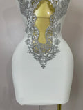 Sexy Silver Sequin White V Neck Cut Out Short Bandage Dress Women 2025 New Elegant Luxury Birthday Party Club Wedding Vestidos