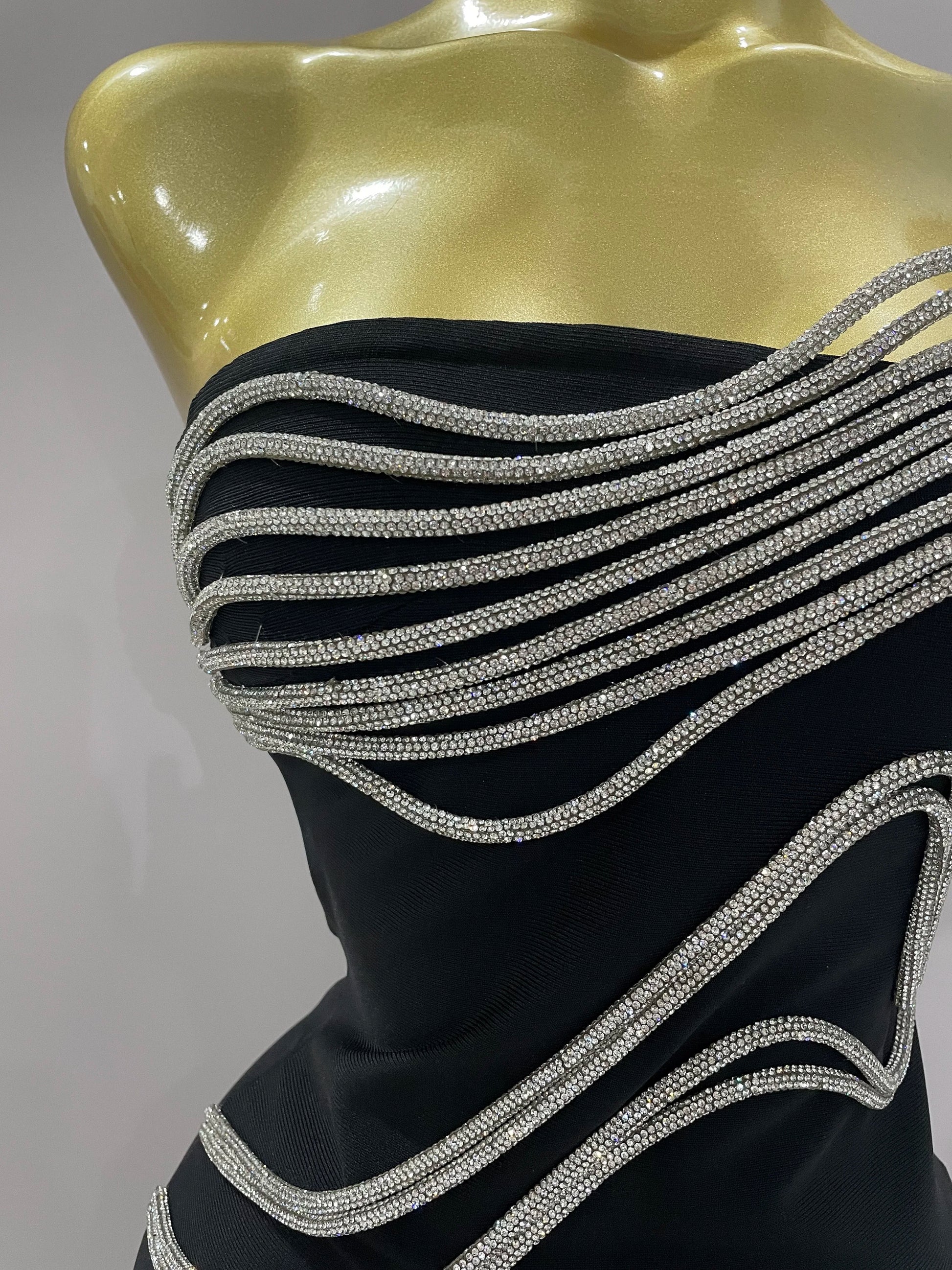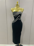 Sexy Strapless Diamond Lines Bodycon Bandage Long Dress 2025 Women Celebrity Red Carpet Elegant Evening Birthday Party Dresses