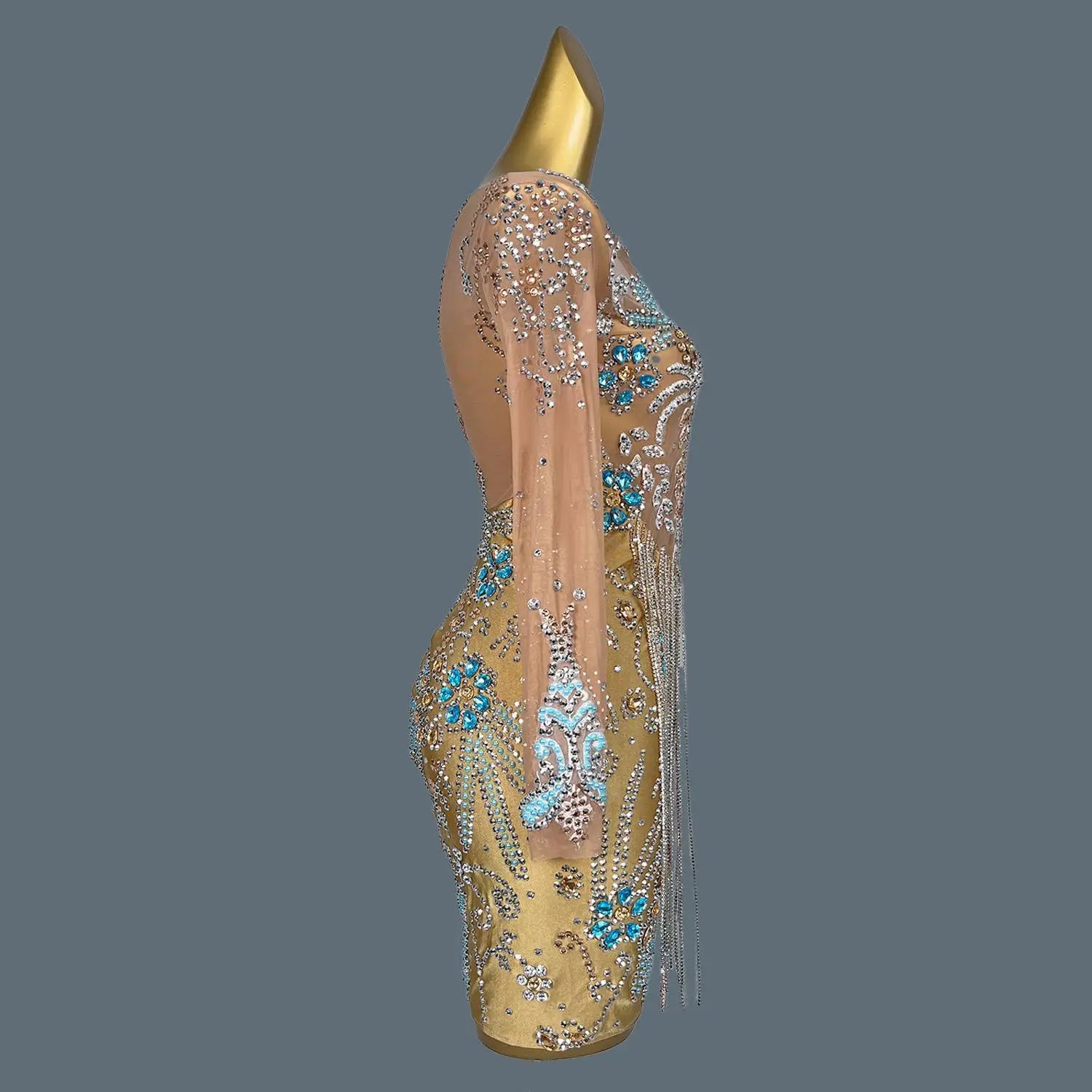 Sexy Transparent Mesh Tassel Dress Women Evening Dress Birthday Celebrate Outfit Club Sexy Show Costume Luxury Rhinestone Lanhai