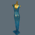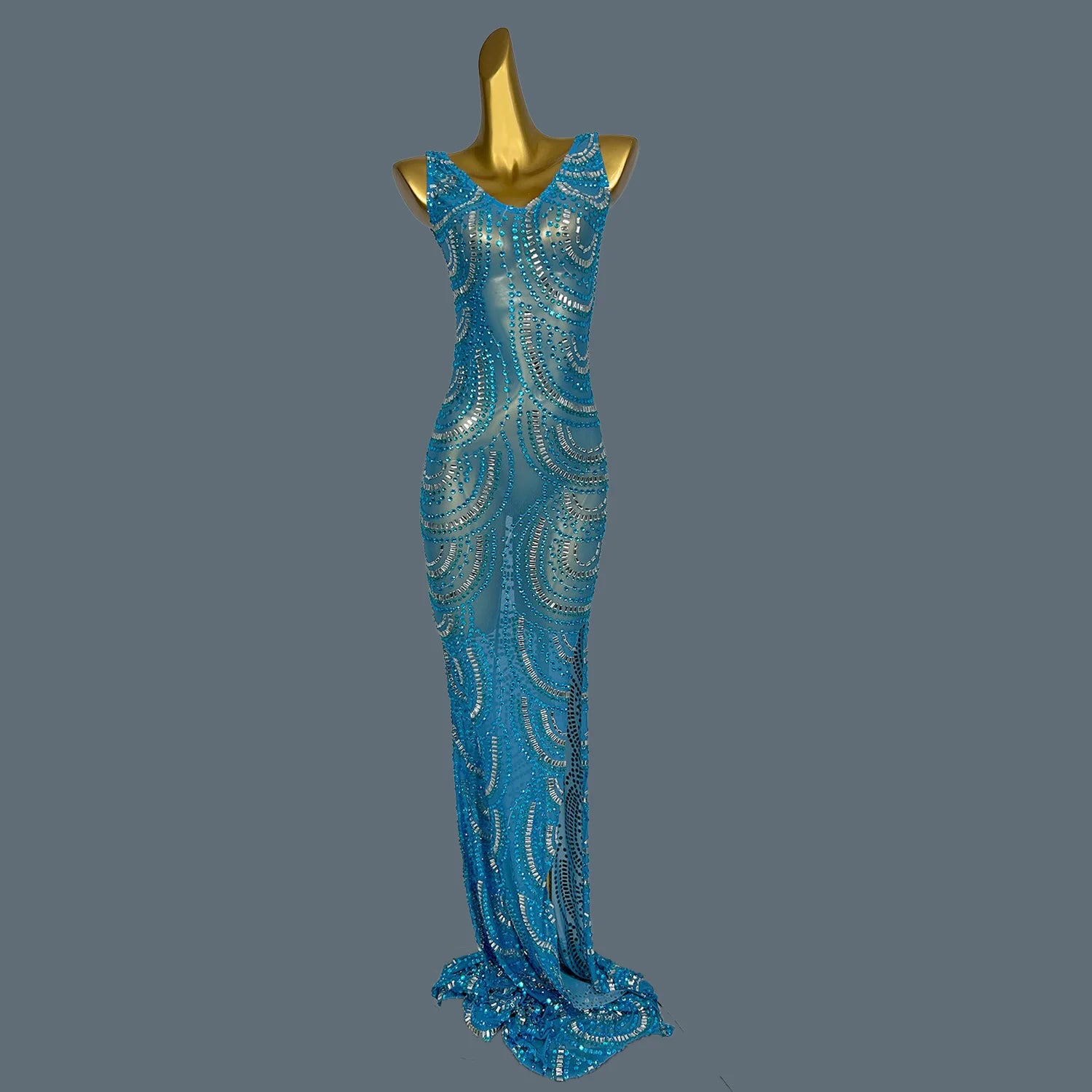 Sheer Mesh Blue Dress Sleeveless High Side Slit Club Dress Birthday Prom Bodycon Evening Dresses For Women Formal Luxury Lanquan