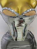 Sparkly Gold Sequin Sexy Top Two Pieces Set 2025 Women Celebrate Party Birthday NightClub Performance Dancer Show Stage Outfit