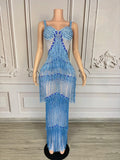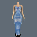 Sparkly Rhinestones Tassel Slip Long Dress Sexy Women Celebrate Prom Sheer Mesh Evening Dress Birthday Photo Shoot Wear lantian
