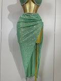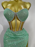 Sparkly Sequins Diamond Birthday Party Two Piece Set Evening Dress Women Sexy Singer Dancer NightClub Bar Performan Costume
