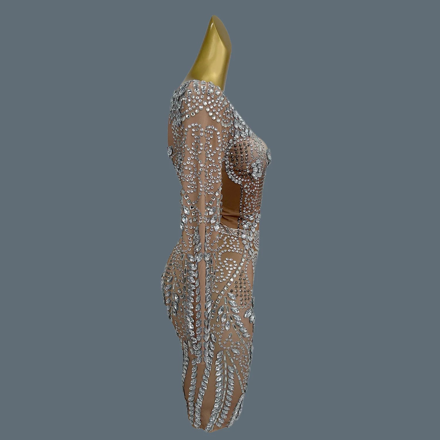 Sparkly Silver Big Rhinestone Sheer Mesh Evening Dress Birthday Celebrate Party Luxurious Costume fof Women Prom Dress Liushu