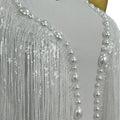 Sparkly Women White Tassel Leotard Sexy Pearls Sequins Fringes Bodysuit Club Performance Wear Party Stage Dance Costumes Shuye