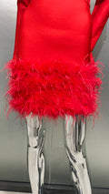 STOCK Gorgeous Feathers Sexy Hollow Out Red Mini Bandage Dress Fashion Woman Evening Dress Merry Christmmas Party Outfit