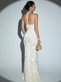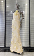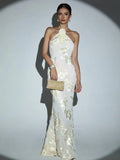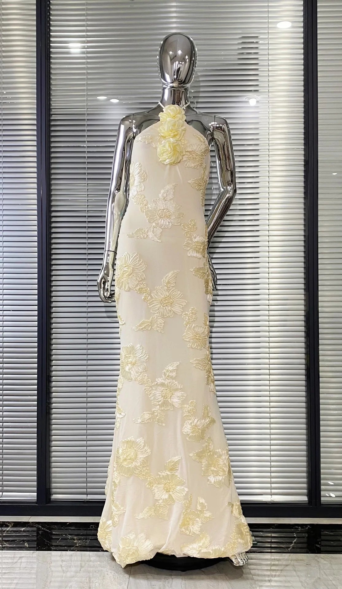 STOCK Women Sexy Halter Off the Shoulder Embroidery Bodycon Long Dress Elegant Evening Party Birthday Cocktail Outfit