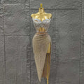 This bespoke, handmade dress is crafted with exceptional attention to detail using premium materials. Each stitch reflects the artistry and dedication of our skilled artisans, ensuring a timeless and elegant look. Designed to complement every season—Spring, Summer, Fall, and Winter—this dress is as versatile as it is beautiful.