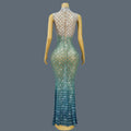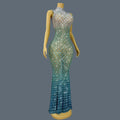 Trendy Gradient Sparkling Crystal Sheer Mesh Long Dress Sexy High-end Skinny Evening Dress Birthday Night Party Outfit Qingshe