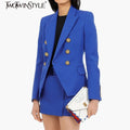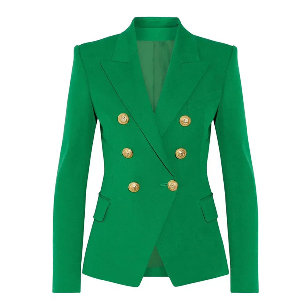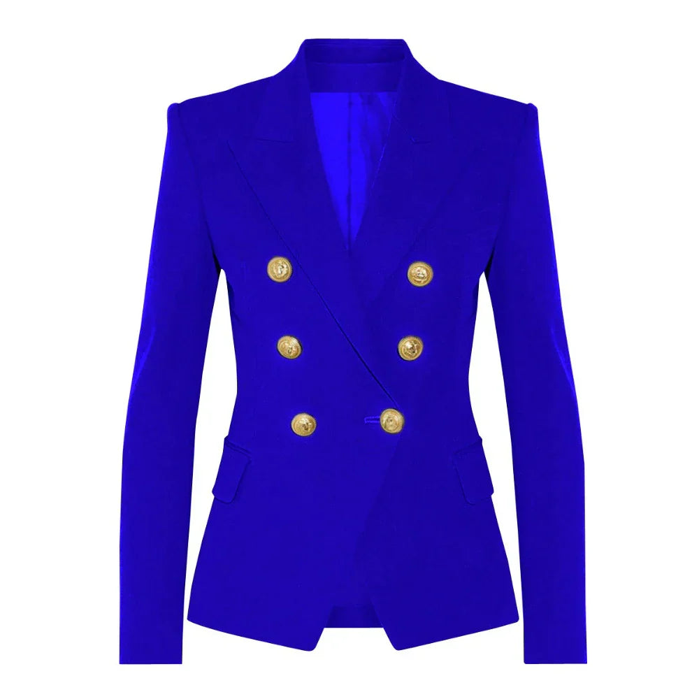 Solid Slimming Fashion Blazer for Women Lapel Long Sleeves Patchwork Double Breasted Elegant Coat Female Clothing