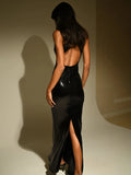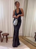 VC 2024 Summer Women'S Dress Black Sequins Tight Sexy V-Neck Sleeveless Backless Catwalk Party Long Gowns With 3D Flower