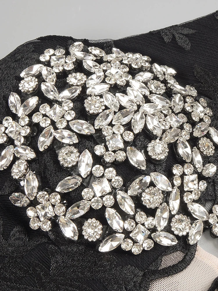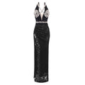 VC Black Lace Appliques Long Dress for Women Rhinestones Halter High Slit Diamonds Sleeveless Trumpet Cocktail Evening Gown