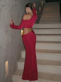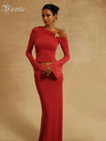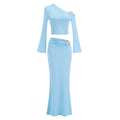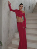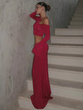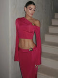 VC Chic One-Shoulder Crop Top and Maxi Skirt Ensemble with Floral Accents for a Special Occasion Evening Gown