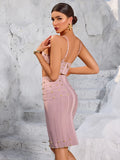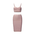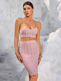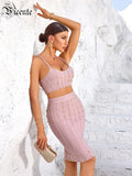 VC Chic Pink Studded Crop Top and Skirt Set for a Trendy Rooftop Party Evening Gown Dress
