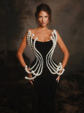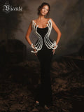 VC Exquisite Black Velvet Mermaid Gown with Statement Pearl Decor for a Special Occasion Dress