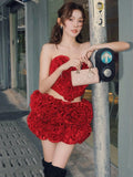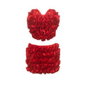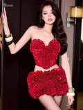 VC Fashion Passionate Red Two-Piece Set Dress Strapless Rose Embellished Crop Top and Mini Skirt Party Gown