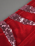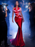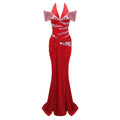 VC Red Mermaid Birthday Long Dress Off The Shoulder Sequins Details Sparkling Satin Pleated Prom Party Evening Gowns