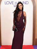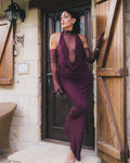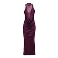 VC Sexy Turtleneck Lace Patchwork Long Dress Women Sleeveless Backless Pleated Celebrity Evening Party Gowns with Gloves