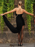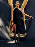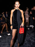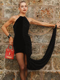 VC Sexy Women Black Short Dress O-Neck Sleeveless Bodycon Draped Backless Asymmetrical Mini Dress Cocktail Party Vestidos