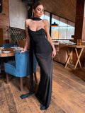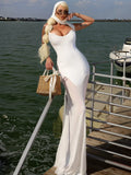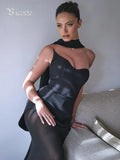 VC Strapless A Line Long Bandage Dress Black Mesh Patchwork Elegant Women Blackless Evening Party Gowns with Ribbon