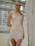 VC Stunning Beige Sleeveless Pearl Short Wedding Mini Dress Party Evening Gown