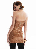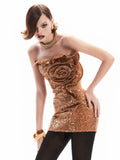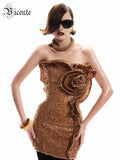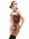 VC Stunning Strapless Sleeveless Brown Bodycon Mini Dress with Sequin Rose Detail for a Party