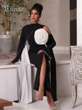 VC Summer New Simple Black Crepe 3D Flowers Mermaid Prom Dress 2024 Slim Long Sleeve Ankle-Length Formal Evening Dress