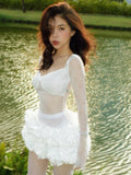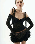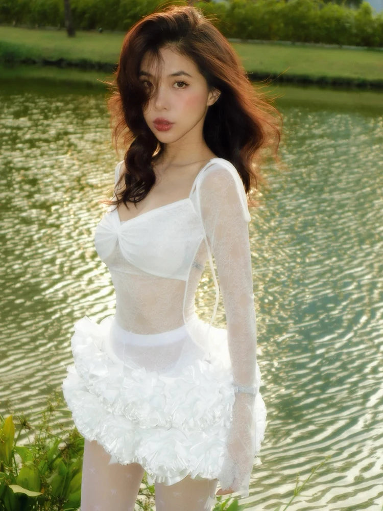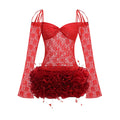 VC Sweet Fairy-Tale White & Red Off-Shoulder Lace & Puff Skirt Dress Outfit for Themed Parties