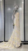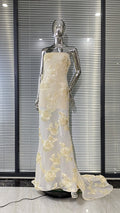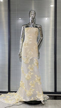 White Moth Orchids One Shoulder Yellow Green Ankle Length Bandage Dress Celebrity Party Evening Dress Woman Voaction Outfit