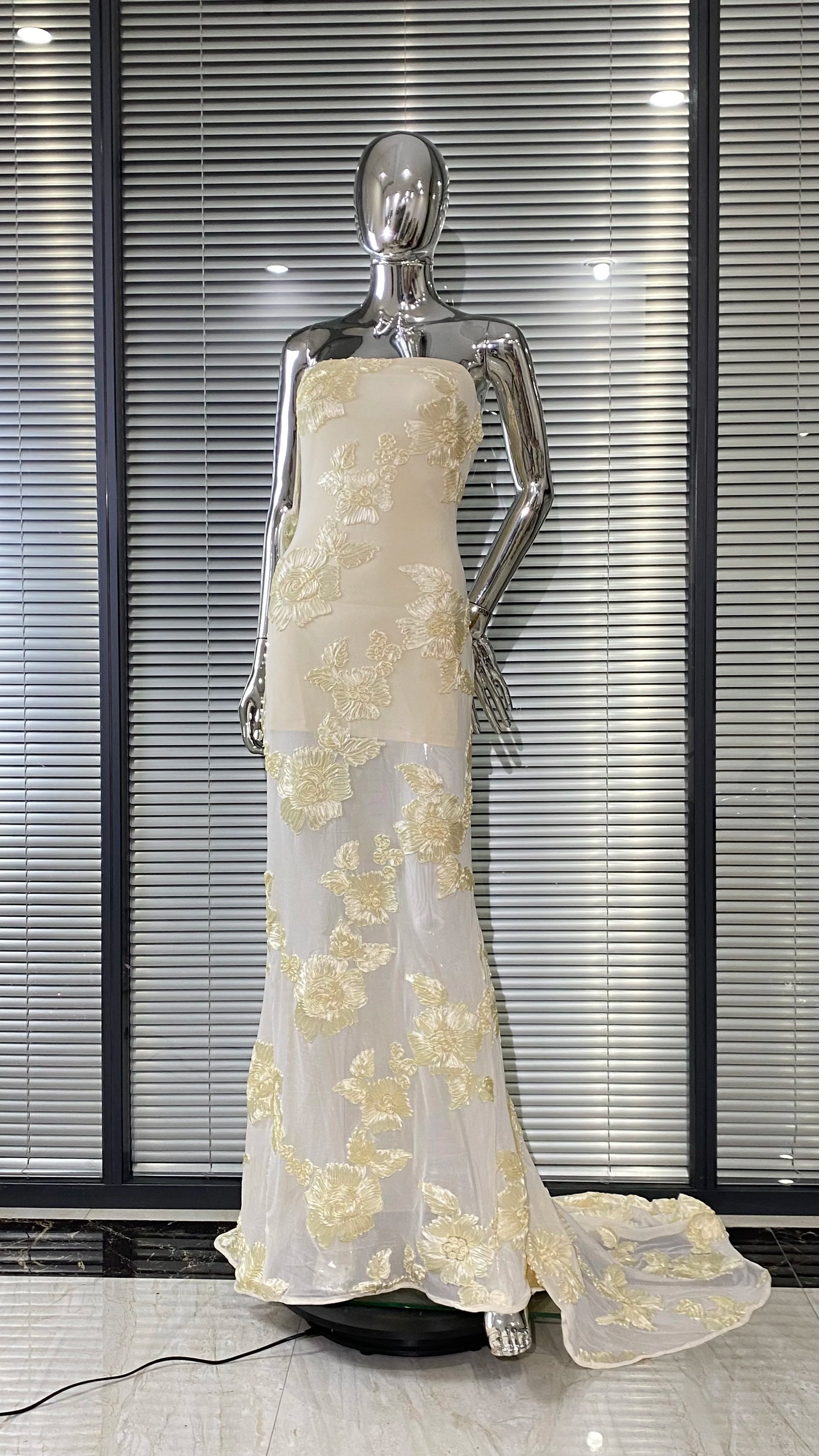 This bespoke, handmade dress is crafted with exceptional attention to detail using premium materials. Each stitch reflects the artistry and dedication of our skilled artisans, ensuring a timeless and elegant look. Designed to complement every season—Spring, Summer, Fall, and Winter—this dress is as versatile as it is beautiful.