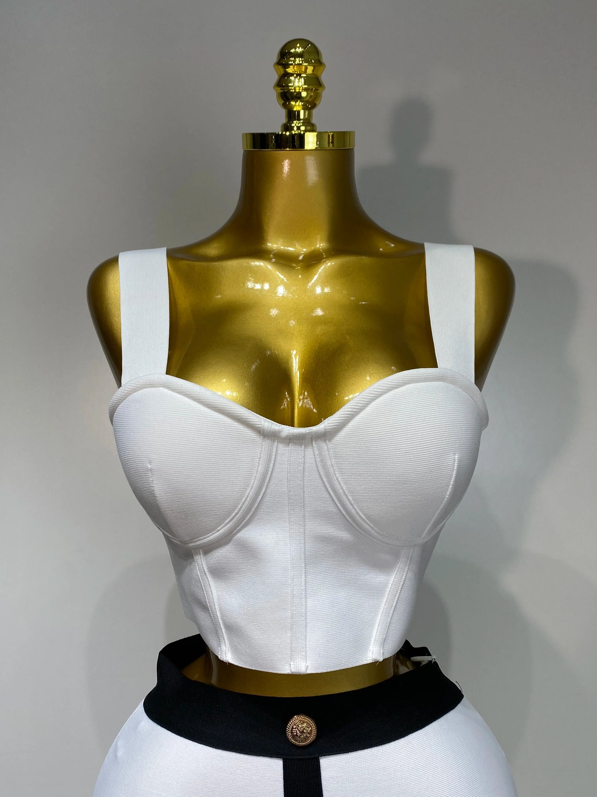 Women Button Patchwork White Black Bodycon Bandage Two Piece Set Designer High Waist Party Club Skirt Set