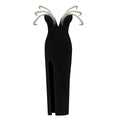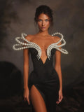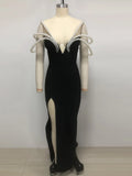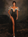 Women Sexy Black Pearl bead Maxi Long Bodycon Bandage Dress 2025 Celebrity Elegant Evening Club Party Luxury Birthday Gowns
