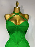 Women Sexy Sleeveless Backless Green Midi Bodycon Bandage Dress Celebrity Elegant Evening Club Party Luxury Birthday Dress