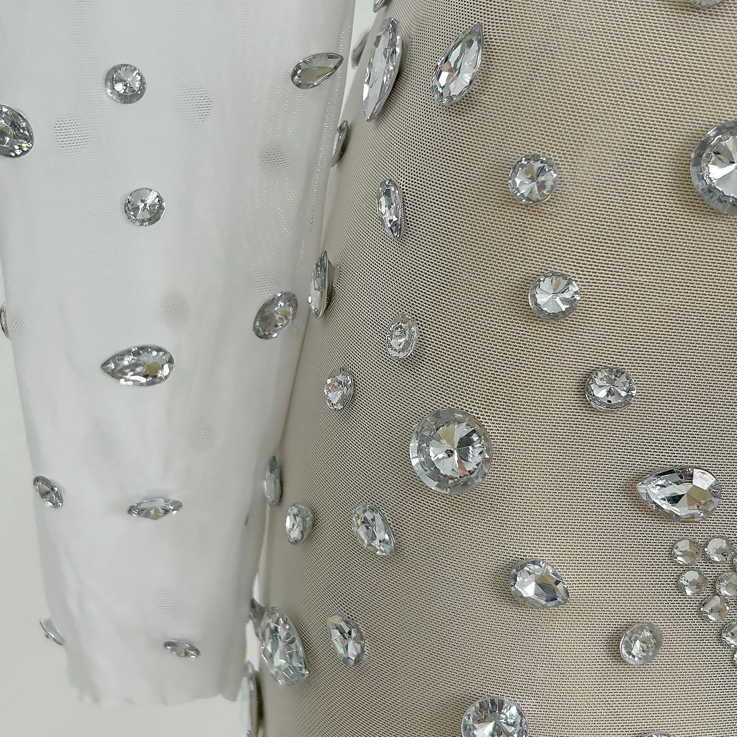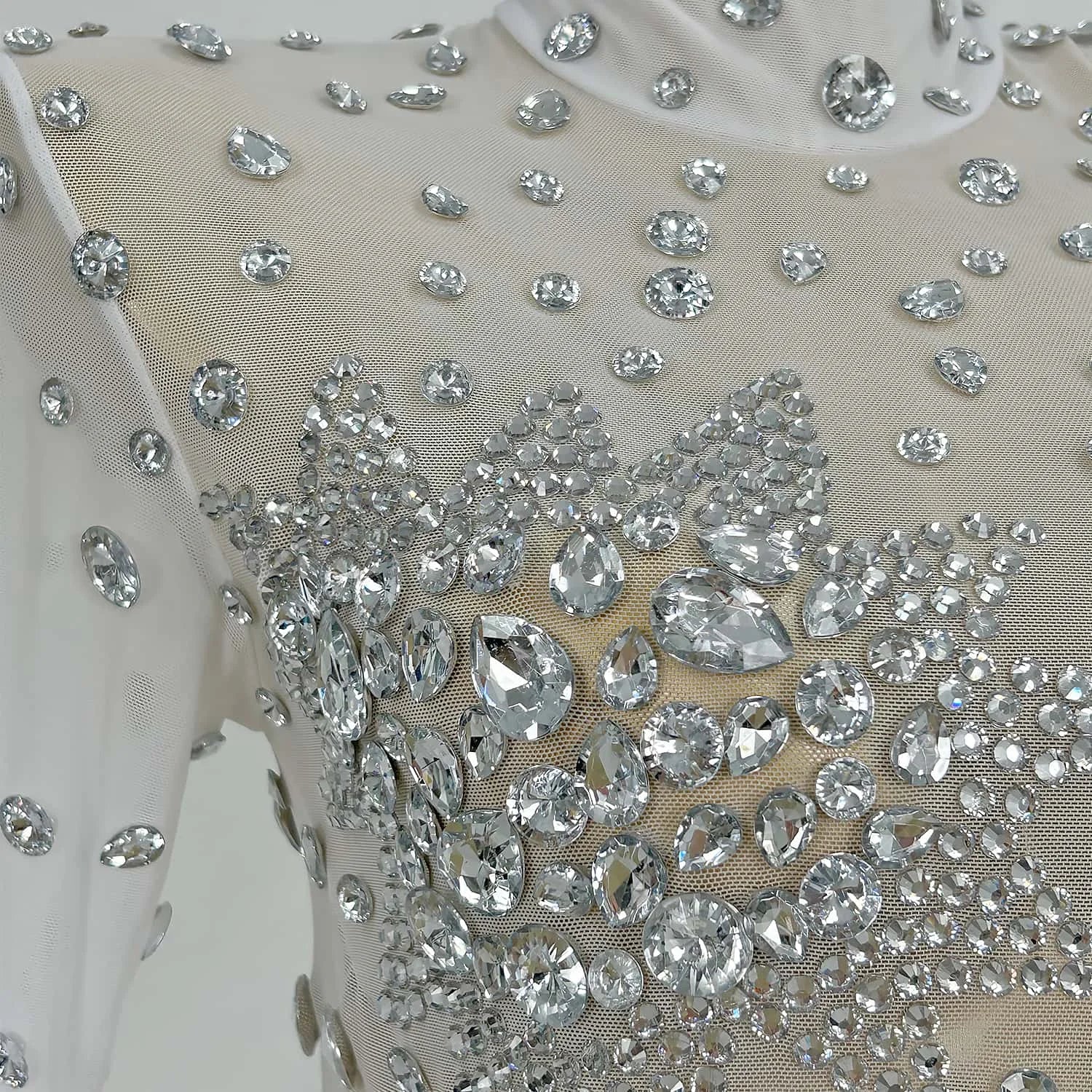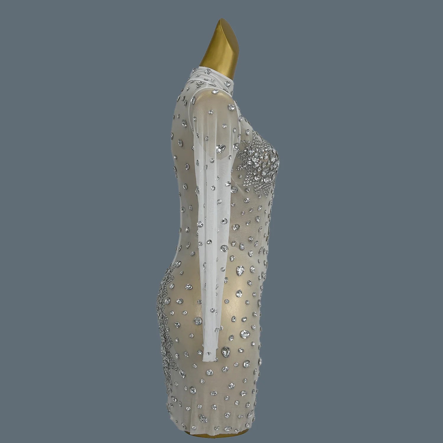 Women Sexy White Crystals Mini Dress Luxury Birthday Celebrate Evening Party Rhinestones Gown Singer Stretch Costume Guibin