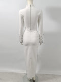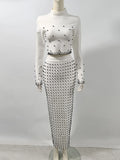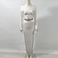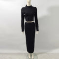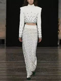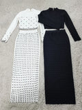 Women'S Black And White Beaded Short Top+Long Skirt Bandage Two-Piece Set Elegant Evening Party Female Outfit 2025 New