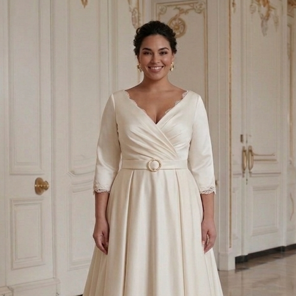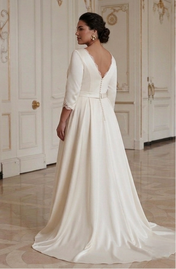 Gaun Pengantin Elegan untuk Wanita Berlekuk Gaya Pernikahan Abadi