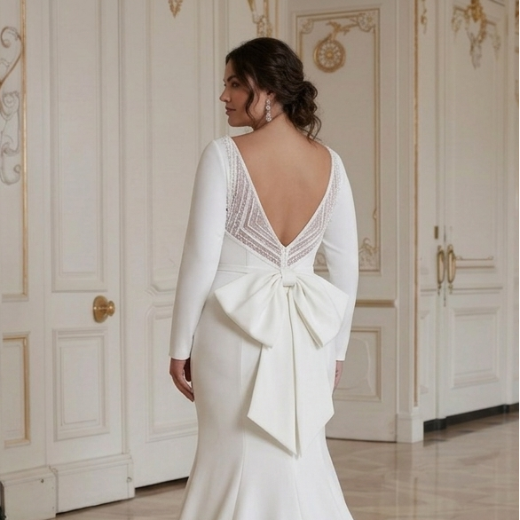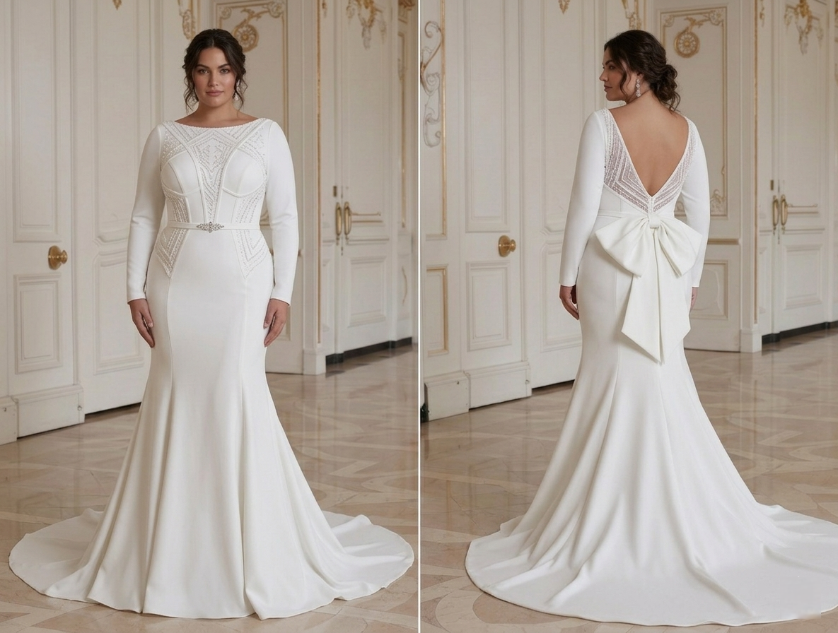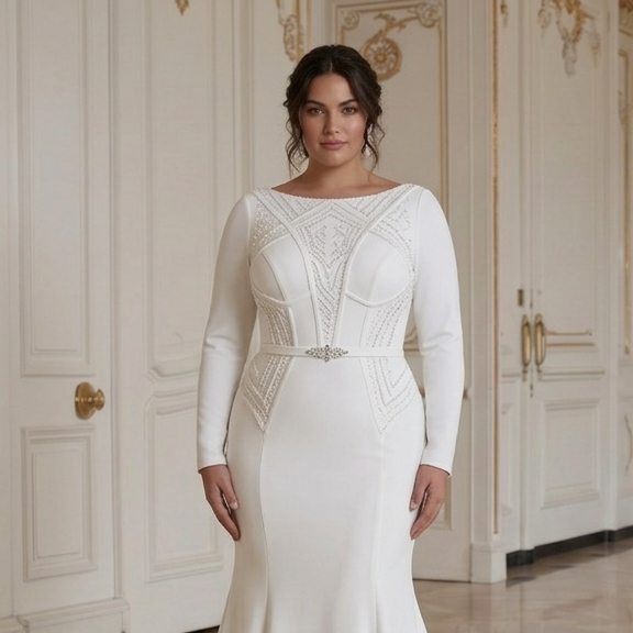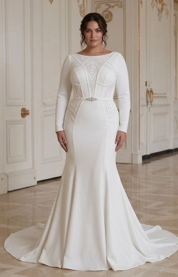 Gaun Pengantin Ukuran Plus dengan Kain Elastis