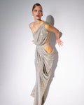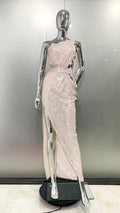 2024 Summer Sexy Hollow Out One Shoulder Champagne Sequins Ankle Length Dress Woman Evening Party Dress Beach Vocation Outfit