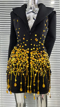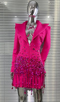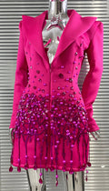 2025 Luxury Diamonds Shining Sequins Deep V-Neck Mini Suit Dress Fashion Woman Birthday Party Dress Stage Performance Costume